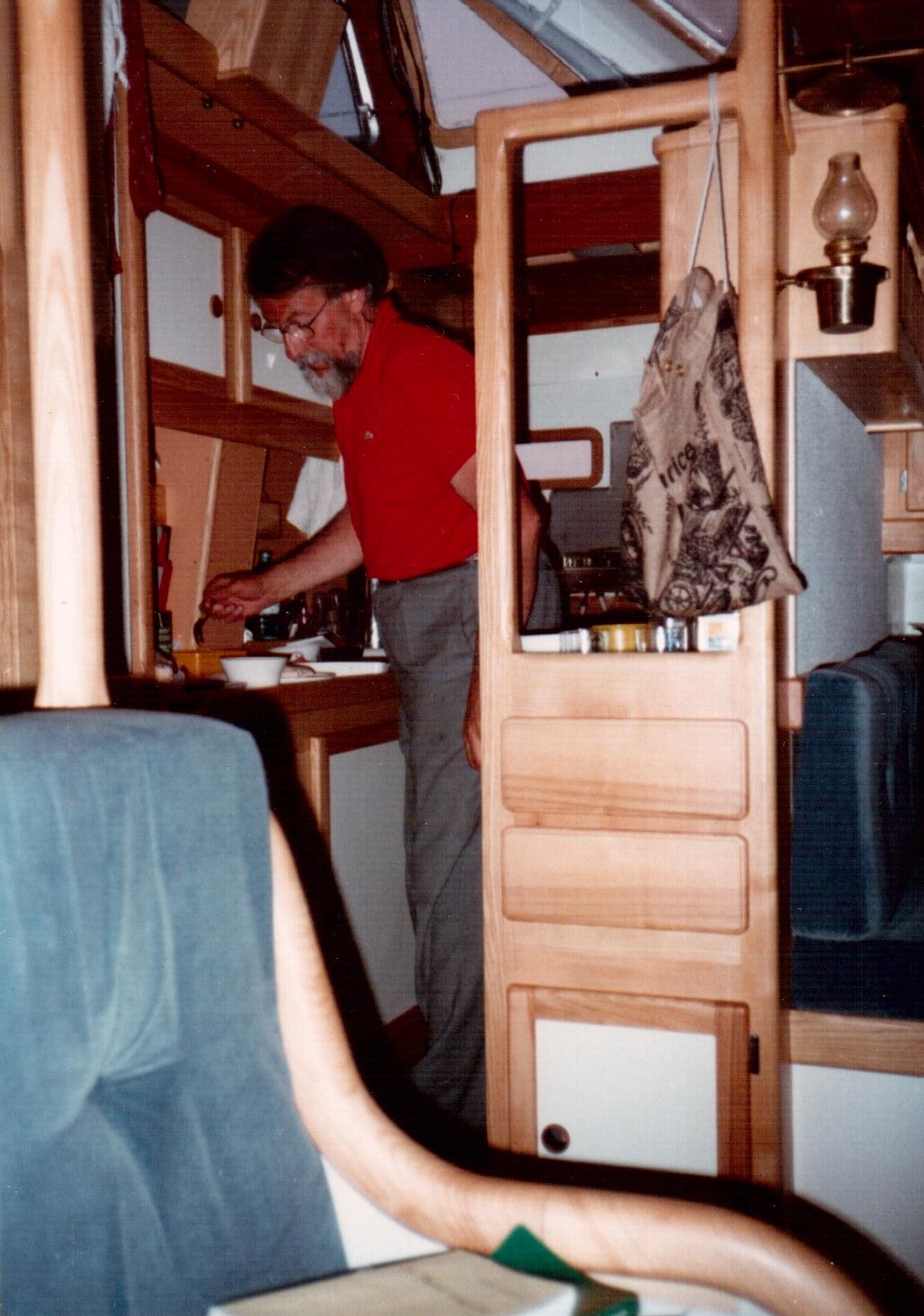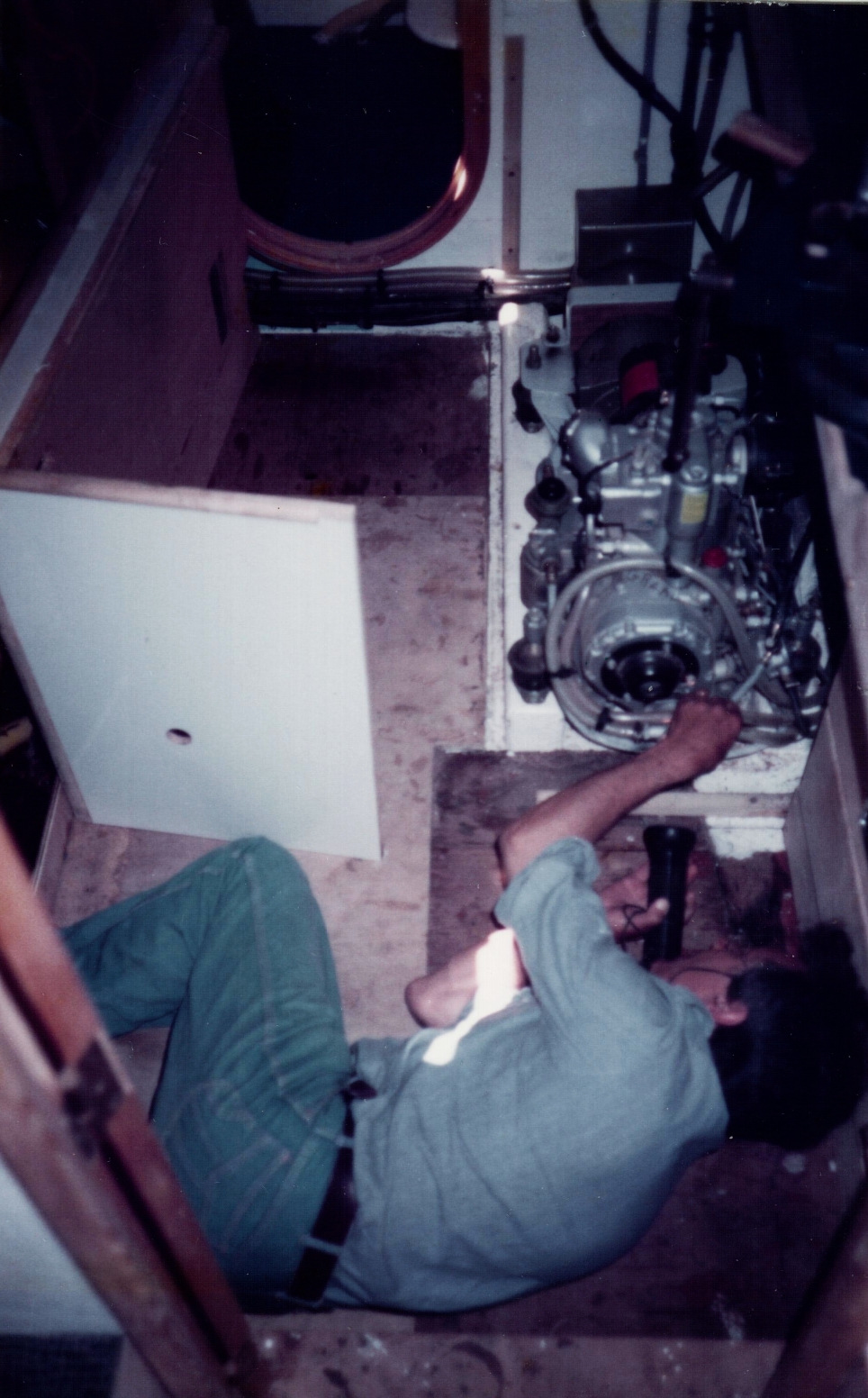A partir de ce moment aussi commença un combat sans merci entre Yves et la pompe à eau (entendez celle qui pompait l’eau des réservoirs d’eau douce pour la distribuer, après qu’elle ait été mise sous pression, aux robinets de lavabos et de la cuisine.)