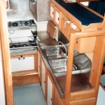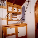 De mon côté, pendant ces années de chantier j’assurais l’intendance domestique et vérifiais les comptes des factures du chantier. Mon travail à bord était loin d’égaler celui d’Yves, bien sûr, mais il a été tout de même essentiel car nous n’aurions jamais pu financer les centaines d’heures de travail consacrées aux revêtements internes.