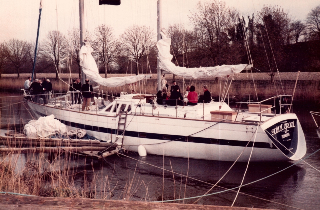 « Saint Graal a quitté définitivement le chantier naval de l’Anitra le lundi 25 Avril 1983 après plusieurs semaines de travaux forcés.