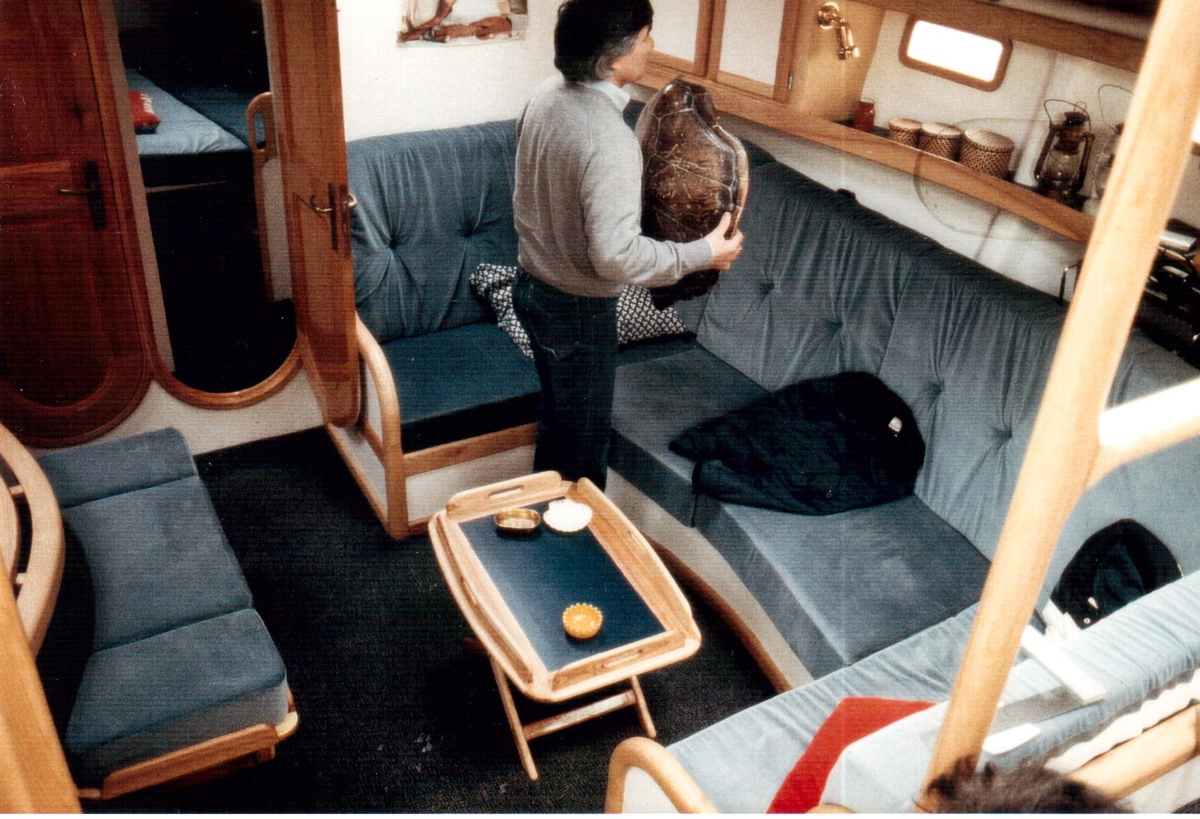 Le pire c’étaient ces parois à revêtir de tissus de verre, à plastifier, et à poncer pour détruire les derniers fils apparents ; c’était atroce car les tissus de verre, réduits en poussière, pénétraient et démangeaient sur toutes de parties de peau même protégées. Ensuite les gelcoats, les revêtements de parois, des peintures et vernis de l’intérieur de tout le bateau ont été de mon ressort.